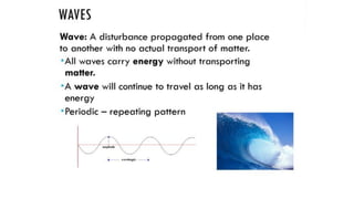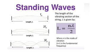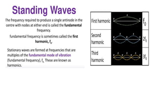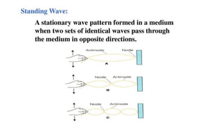 1) The document discusses different types of wave propagation including transverse waves, longitudinal waves, standing waves, interference, and the Doppler effect.