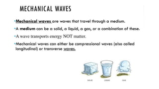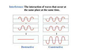 2) It provides examples of transverse wave propagation using a Slinky toy and explains concepts like constructive and destructive interference that result from the superposition of multiple waves.