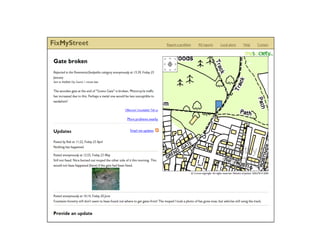 가까운 곳 쉬운것부터 고쳐가는 참여운동 FixMyStreet 1. 거리에서 고쳐야 할 문제점 을 발견했다면 2. 증거사진 ( 휴대폰 , 디카 ) 찍고 현재위치 확인 3. 인터넷 또는 모바일로 [ 이 거리를 바꾸자 ] 에 신고 4. [ 이 거리를 바꾸자 ] 가 나서서 발로 뛰며 직접 문제 해결 5. 쉬운 것에서부터 세상을 아름답게 바꾸는 따뜻한 운동 이거바 fixmystreet.kr
