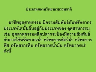 ประเภทของทรัพยากรธรรมชาติ อาชีพอุตสาหกรรม มีความสัมพันธ์ กับทรัพยากร ประเภทใดนันขึนอยู่กับประเภทของ