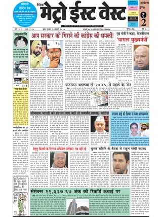 Úesšs mlej kesâ DeKeyeej GOLD Úeheves kesâ efueS efJeÕemeveerÙe mLeeve 7GÅeesie YeJeve, Mecee& Fb[mš^erÙeue Fmšsš, JeeueYeó jes[, ieesjsieebJe (F&) cegbyeF& veb. 400063. cees.9320241710/ 9699796991 ÌãÓãà : 01 Debkeâ - 237 ‚ã½ãð¦ãÌãããä¥ã 29186.00(-55.00) SILVER 44420.00(-60.00) (RS/$) visit us at-www.metroeastwest.blogspot.in 2 FIR keâer heeyeboer nšer lees yeÛeves }ieer yesefšÙeeb `YeieoÌ[ keâer peebÛe keâer peeS' cegbyeF& Oece&ieg® [e@. meÙÙeovee ceesncceo yegjnevegöerve kesâ Debeflece mebmkeâej ceW ceÛeer YeieoÌ[ ceW 18 ueesieeW keâer ceewle nes ieF& Leer Deewj 59 ueesie IeeÙeue nes ieS Les~ YeieoÌ[ kewâmes ceÛeer? Fme ceeceues keâer peebÛe keâer ceebie efJeOeeve heefj<eo efJejesOeer oue veslee efJeveeso leeJeÌ[s ves keâer nw~ cegKÙeceb$eer he=LJeerjepe ÛeJneCe keâes efueKes he$e ceW leeJeÌ[s ves keâne nw efkeâ [e@. meÙÙeovee ves Deheveer hetjer efpeboieer meceepe keâes veF& efoMee osves ceW iegpeej oer~ Gvekesâ efveOeve kesâ yeeo nesvesJeeueer Yeejer YeerÌ[ keâes OÙeeve ceW jKekeâj keâevetve JÙeJemLee yeveeS jKeves keâer peJeeyeoejer DeefOekeâeefjÙeeW keâer Leer~ ieCeleb$e efoJeme hej 12 npeej ueesie Deecebef$ele cegbyeF& nj Je<e& 26 peveJejer keâes efMeJeepeer heeke&â hej nesvesJeeues ieCeleb$e efoJeme keâe keâeÙe&›eâce Fme Je<e& cejerve [^eFJe hej nesiee~ Fme DeJemej hej 12 npeej ueesieeW keâe Deecebef$ele efkeâÙee ieÙee nw~ Ùen peevekeâejer jepe efMe°eÛeej ceb$eer megjMe s Mesóer ves oer~ jepÙeheeue kesâ. MebkeâjveejeÙeCeve kesâ neLeeW megyen 9 yepekeâj 15 efceveš hej OJepeejesnCe efkeâÙee peeSiee~ Fme ceewkesâ hej Leuemesvee, veewmesvee Deewj JeeÙegmesvee kesâ peJeeveeW Éeje efJeefYeVe Øekeâej kesâ keâeÙe&›eâce hesMe efkeâS peeSbies Deewj yeesHeâesme& meefnle DevÙe nefLeÙeejeW keâes ef o KeeÙee peeSiee~ ceg b y eF& ef J eÕeef J eÅeeueÙe, veeceÛeer v e ceneefJeÅeeueÙeeW kesâ Svemeermeer Je SveSmeSme oue kesâ Úe$e Yeer Fme keâeÙe&›eâce ceW menYeeieer neWies~ ½ãìʾã-2.50/- Deehe mejkeâej keâes efiejeves keâer keâebieÇsme keâer Oecekeâer! ‡ãŠü¡Ìãñ ¹ãÆÌãÞã¶ã ÂðÁ Ñ 61.89(0.27) RNI.No.MAHHIN/2013/50954 cegyeF&, ]ieg®Jeej 23peveJejer 2014 b Ghepes veeo menpe yeng Yeeble Depehee peehe Yeerlej nes Meeble jece jece heo Meefòeâ peieeJes jece jece Oegve peYeer jceeJes Deeoceer kesâke} efoceeie keâer veme Heâšves Deewj efo} keâer OeÌ[keâve ®keâves mes venerb cejlee yeefukeâ Gcceerosb Deeceb$eCe cetuÙe veF& efouueer, Deehe mejkeâej mes keâebieÇsme efkeâmeer Yeer he} meceLe&ve keeheme }s mekeâleer nw~ efo}êer keâebieÇsme DeOÙe#e Dejefkeboj efmebn }ke}er ves keâne efkeâ Ùeefo cegKÙeceb$eer Dejefkebo kesâpejerkee} ves keâevetve ceb$eer meesceveeLe Yeejleer keâes heo mes venerb nšeÙee lees meceLe&ve keehemeer leÙe nw~ }ke}er ieg ™ keej keâes Fmeb meb y eb O e ces b GhejepÙehee} vepeerye pebie mes ceg}ekeâele keâj Fme yeejs cesb Dekeiele keâjeSbies~ }ke}er ves keâne efkeâ mejkeâej pevelee mes efkeâS keeos hetjs keâjves keâer yepeeÙe iewjkeâevetveer keâeÙe&esb cesb }ies Deheves cebef$eÙeesb keâes yeÛeeves cesb }ieer nw~ cee}tce nes efkeâ efo}êer cesb keâebieÇsme kesâ meceLe&ve mes ner Deehe mejkeâej ves yengcele neefme} efkeâÙee Lee~ keâebieÇsme meceLe&ve keeheme }s }sleer nw lees Deehe mejkeâej Deuhecele cesb Dee peeSieer~ ne}ebekeâ 6 ceen lekeâ Gmekesâ f efKe}eHeâ DeefkeMkeeme heÇmleeke venerb }eÙee pee mekeâlee~ GOej, Deehe ves keâne efkeâ meesceveeLe hej }ies Deejesheesb keâer peebÛe nes jner nw~ peebÛe keâe efve<keâ<e& Deeves kesâ yeeo ner keâesF& keâej&keeF& nesieer~ efnvot mesvee ves Yeer yegOekeej keâes meesceveeLe Yeejleer kesâ efKe}eHeâ peblej ceblej hej heÇoMe&ve efkeâÙee~ GOej, Gieeb[e keâer heeref[le ceefn}eDeesb ves Yeer Yeejleer keâer henÛeeve keâj }er nw~ efKeÌ[keâer SkeäšsbMeve cesb meskeäme jwkesâš hej js[ kesâ efme}efme}s cesb Heâbmes keâevetve ceb$eer Yeejleer hej hegef}me keâe efMebkeâpee keâmelee ner pee jne nw~ keeref[Ùees Heâgšspe kesâ DeeOeej hej Gieeb[e keâer ceefn}eDeesb ves Úehesceejer kesâ oewjeve DeiekeeF& keâj jns Yeejleer keâes henÛeeve ef}Ùee~ ceefn}eDeesb keâe Deejeshe nw efkeâ Gvns peyejve cesef[keâ} peebÛe kesâ ef}S Scme }s peeÙee ieÙee~ ceefn}eDeesb ves vÙeeÙeeOeerMe kesâ mece#e ope& keâjeS yeÙeeveesb cesb Ùen Yeer keâne efkeâ Gvekesâ meeLe vemeêYesoer efšhheCeer keâer ieF&~ Yeejleer hej Deejeshe nw efkeâ Gvekesâ vesle=lke cesb kegâÚ }esieesb kesâ mecetn ves DeHeâÇerkeâer ceefn}eDeesb kesâ Iej hej ceOÙe jeef$e cesb Úehee ceeje~ Yeejleer keâe Deejeshe Lee efkeâ Ùes ceefn}eSb kesMÙeeke=eflle cesb ef}hle nwb~ FOej, ceb$eer ves Deheves Thej }ies Deejeshe keâe Keb[ve efkeâÙee nw~ jefkekeej keâes ner keâesš& ves Fme ceece}s cesb efo}êer hegef}me keâes meesceveeLe Yeejleer kesâ efKe}eHeâ SHeâDeeF&Deej ope& keâjves kesâ DeeosMe efoS Les~ hegef}me met$eesb ves yeleeÙee efkeâ keâesš& ves oes veeFpeerefjÙeeF& Deewj oes Ùegieeb[e keâer ceefn}eDeesb ves ÛeerHeâ cesš^esheesef}šve ceefpemš^sš efkekeskeâ ieesef}Ùee keâer keâesš& cesb ÙeeefÛekeâe oeÙej keâer Leer, efpeme hej keâesš& ves Gvnsb hegef}me kesâ heeme efMekeâeÙele keâjves kesâ ef}S keâne Lee~ yeeo cesb Fve ceefn}eDeesb ves Deheves jepeotleekeeme keâce&ÛeeefjÙeesb kesâ meeLe Meefvekeej keâes keâesš& cesb ÙeeefÛekeâe oeÙej keâer~ efo}êer kesâ keâevetve ceb$eer meesceveeLe Yeejleer kesâ jeef$e ieMleer kesâ oewjeve Ùetieeb[eF& ceefn}eDeesb hej ngS keâefLele nce}s keâer peebÛe veS hegef}me DeefOekeâejer keâes meewbheer ieF& nw~ Skeâ hegef}me DeefOekeâejer ves yeleeÙee efkeâ efo}êer kesâ keâevetve ceb$eer Deewj Deehe kesâ meceLe&keâesb Éeje Ûeej Ùetieeb[eF& ceefn}eDeesb hej efkeâS ieS nce}s keâer peebÛe Skeâ ceefn}e Gheefvejer#ekeâ keâjsieer~ 16 pevekejer keâer jele nce}s keâe efMekeâej ngF& Ûeejesb Ùetieeb[eF& ceefn}eDees