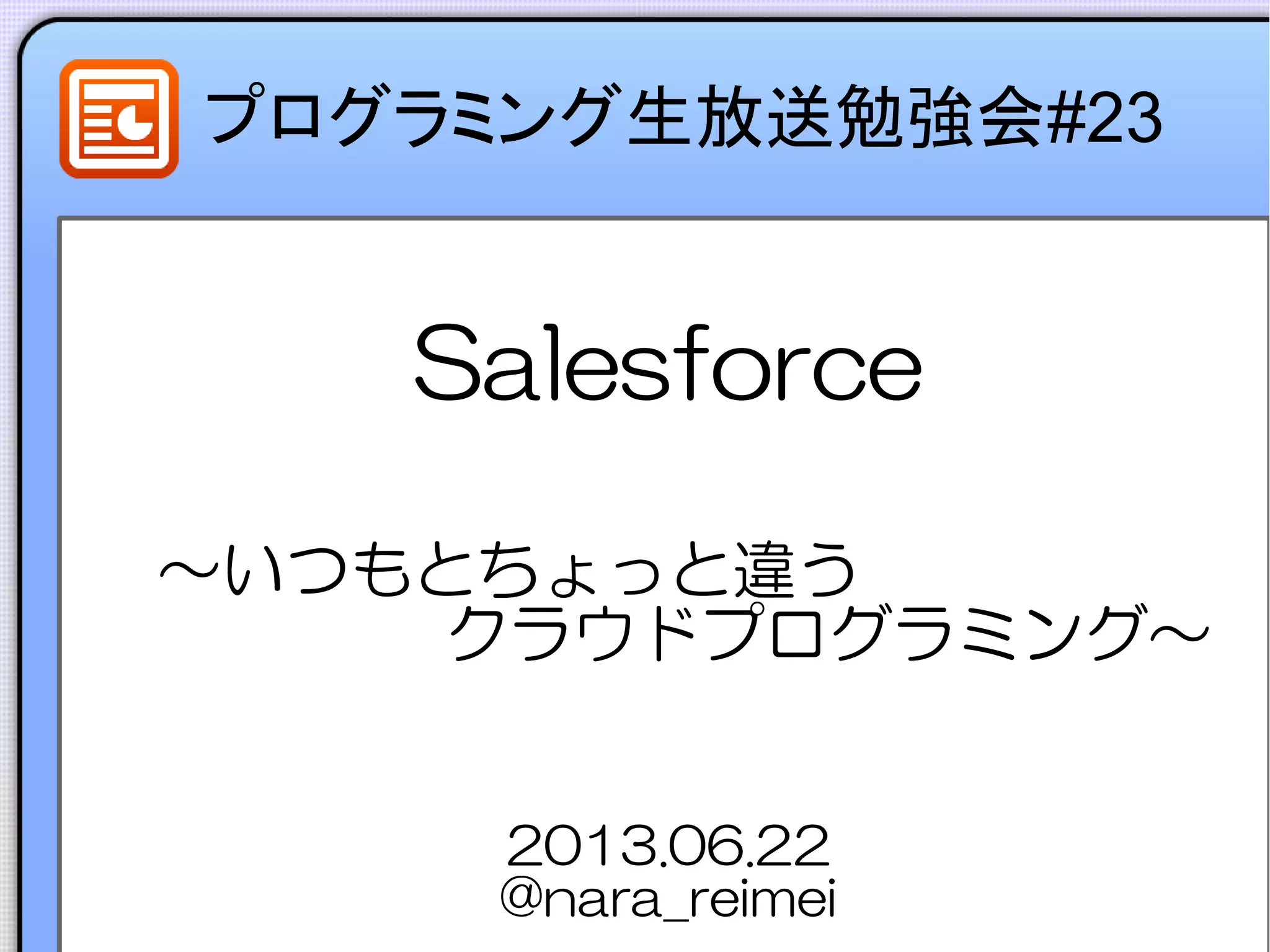 プログラミング生放送勉強会#23 Salesforce ~いつもとちょっと違う クラウドプログラミング~ 2013.06.22 @nara_reimei
