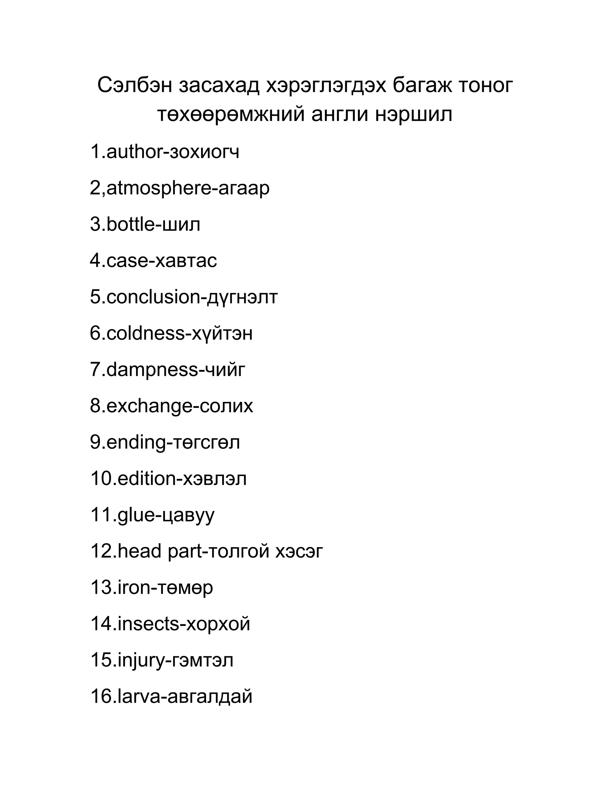 төхөөрөмжний англи нэршил
