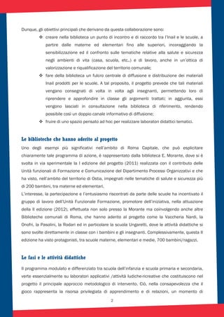 Il progetto 'Di sicuro... al sicuro' è un'iniziativa dell'INAIL che mira a promuovere la salute e la sicurezza nelle scuole attraverso la collaborazione con le biblioteche comunali. Attraverso materiali informativi e laboratori didattici, il progetto coinvolge bambini e giovani nell'apprendimento pratico di comportamenti corretti riguardo alla sicurezza nella vita quotidiana e nei luoghi di lavoro. Nel 2012, la seconda edizione ha coinvolto circa 700 studenti di varie scuole romane in attività educative ludico-ricreative mirate alla sensibilizzazione delle tematiche di salute e sicurezza.