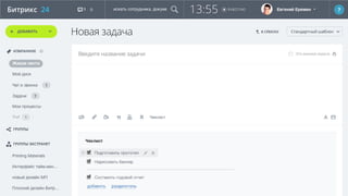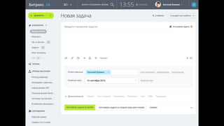 Документ описывает возможности и функционал Bitrix24, включая международные проекты, внедрение в различных странах и активное использование более 800,000 компаний. Он акцентирует внимание на улучшении бизнес-процессов, переходе к цифровым коммуникациям, таким как чат и задачи вместо электронной почты, а также на нововведениях в CRM-системе. В документе также упоминаются преимущества виртуальной АТС и сильная интеграция различных сервисов для повышения продуктивности и управления.