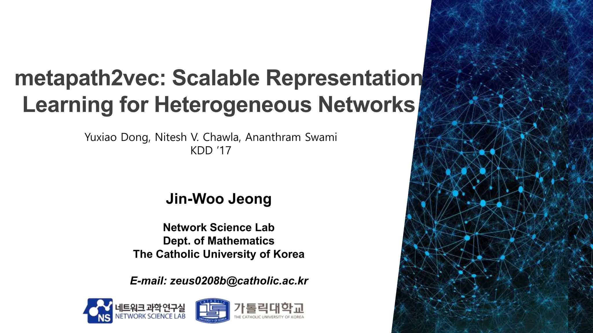 The document introduces metapath2vec and its extension metapath2vec++ for heterogeneous network representation learning, addressing challenges posed by the diversity of node types and relationships in such networks. It details the frameworks' capabilities to preserve structural and semantic correlations while demonstrating their effectiveness through extensive experiments in tasks like node classification and clustering. The study emphasizes the development of unique techniques, including meta-path-guided random walks and heterogeneous negative sampling, to optimize learning and improve various network mining applications.