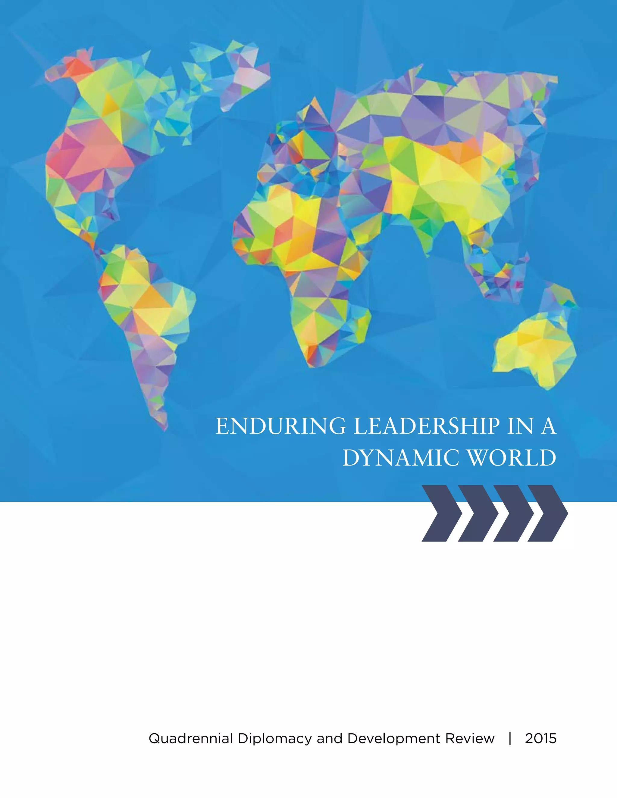 This document summarizes the 2015 Quadrennial Diplomacy and Development Review conducted by the U.S. Department of State and USAID. It outlines four strategic priorities for American diplomacy and development: preventing and mitigating conflict and violent extremism; promoting resilient, open, democratic societies; advancing inclusive economic growth; and mitigating and adapting to climate change. It also discusses building dynamic organizations through knowledge management, innovation, risk mitigation, strategic planning and engaging Americans. Finally, it covers investing in a skilled workforce through increasing agility, diversity, and staff support.