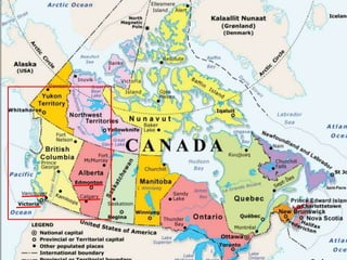 This document lists various locations across British Columbia, Alberta, and Yukon including cities, national parks, lakes, rivers, and other landmarks. Many of the locations listed are natural attractions within national parks such as Banff National Park, Jasper National Park, and Glacier National Park in British Columbia. Cities mentioned include Victoria, Vancouver, Calgary, Edmonton, and Banff in Alberta as well as Whitehorse in Yukon.