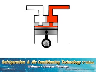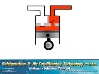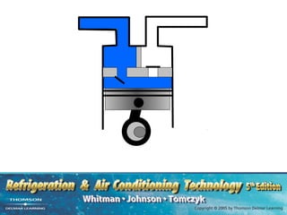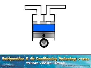 The compressor is the heart of refrigeration systems. It lowers pressure on the suction side and raises pressure on the discharge side. Compression ratio compares these pressures. Two-stage compression uses two compressors to lower the ratio. Common compressor types include reciprocating, screw, scroll, and centrifugal. Proper maintenance keeps the ratio low and prevents liquid slugging which can damage compressors.