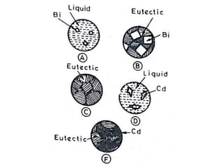 The document discusses phase diagrams and phase equilibria. It introduces key concepts like the Gibbs phase rule, cooling curves, and classification of equilibrium diagrams. The Gibbs phase rule establishes the relationship between the number of phases, components, and degrees of freedom in a system. Cooling curves show the phases present at different temperatures during solidification. The classification of equilibrium diagrams includes diagrams for pure metals, binary solutions, eutectic alloys, and off-eutectic alloys. Hume-Rothery rules govern solid solubility based on factors like atomic size and chemical affinity. Phase diagrams provide important information about phase boundaries, solubility, and temperatures of phase changes.