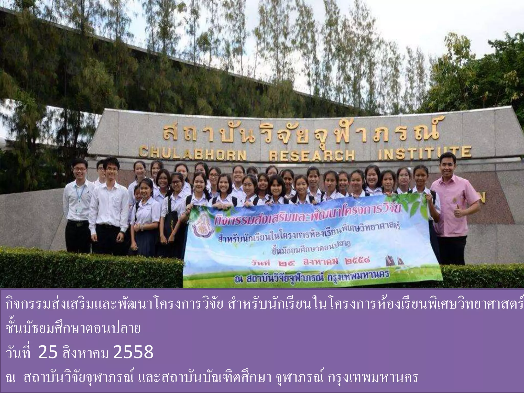 กิจกรรมส่งเสริมและพัฒนาโครงการวิจัย สาหรับนักเรียนในโครงการห้องเรียนพิเศษวิทยาศาสตร ชั้นมัธยมศึกษาตอนปลาย วันที่ 25