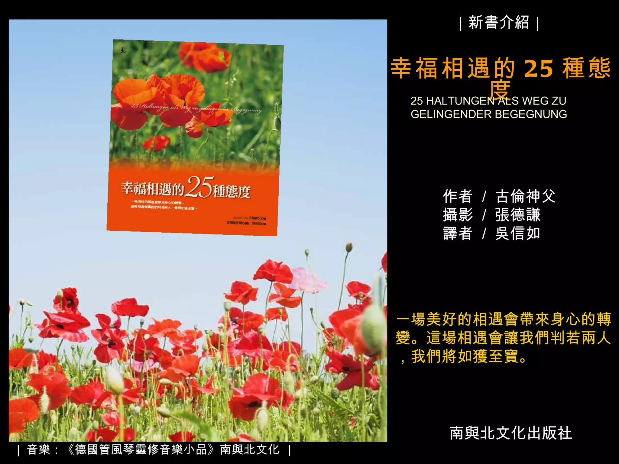 敏銳 感情敏銳的人是勇於表達出自己情感的人。敏銳這個德文字源自於「Sensus 」,也就是感官。敏銳的人就是擅於運用感官的人;他能觀察仔細、認真聆聽,能嗅出感動他人的事物,也能散發出美好的味道,因為他嚐得出自己的味道。敏銳的人也懂得如何感動對方、接觸對方、與對方相處,而不會咄咄逼人。在彼此的關係中,敏銳就是相互關注。如果一方過於魯頓、粗心,那麼另一方就會常常感到受傷,於是,他也沒興趣,再繼續提醒對方重視他的感受。所以,我們必須祈求上帝,賜給我們敏銳的態度,讓我們可以敏銳地察覺對方的感受與情緒。 Die Sensibilität