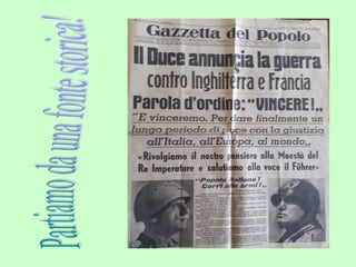 Il documento descrive la lotta degli italiani contro l'occupazione nazifascista durante la Seconda Guerra Mondiale, culminata con la liberazione dell'Italia il 25 aprile 1945. Viene fatto riferimento al famoso canto partigiano 'Bella Ciao', simbolo di resistenza e libertà. Inoltre, si racconta la testimonianza di una donna riguardo al trauma e al dolore della guerra vissuto dal nonno, che ha influenzato profondamente la sua infanzia e la sua comprensione della storia.