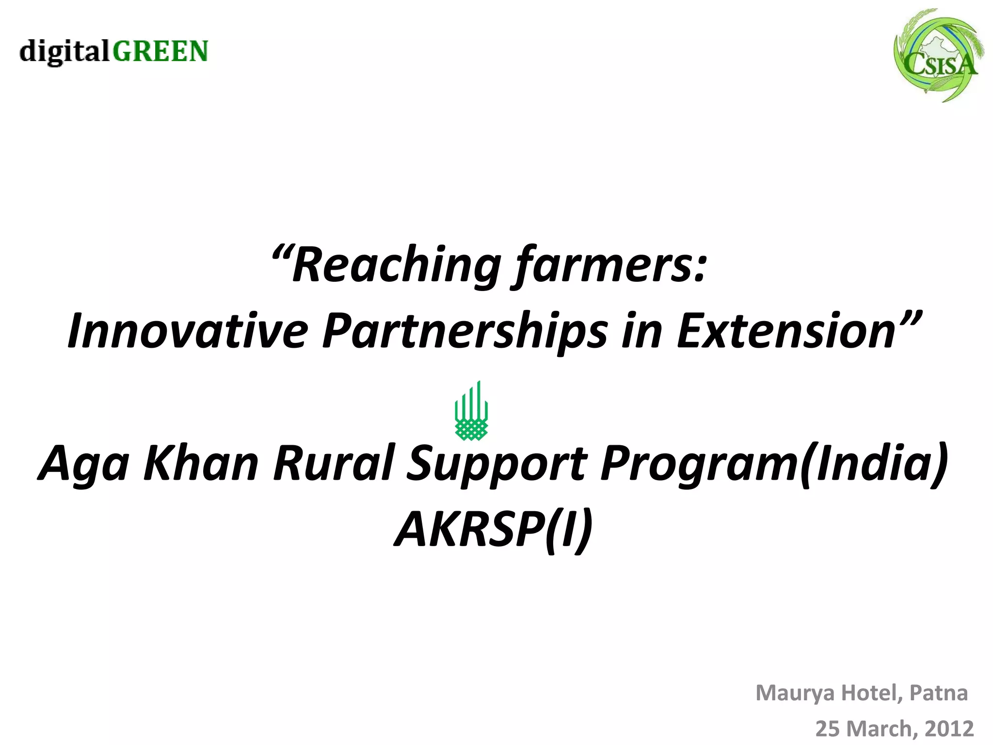 The document provides details about the work of Aga Khan Rural Support Program (India) in the state of Bihar. Some key details include: