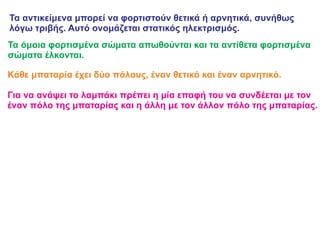 Τα αντικείμενα μπορείνα φορτιστούν θετικά ή αρνητικά, συνήθως