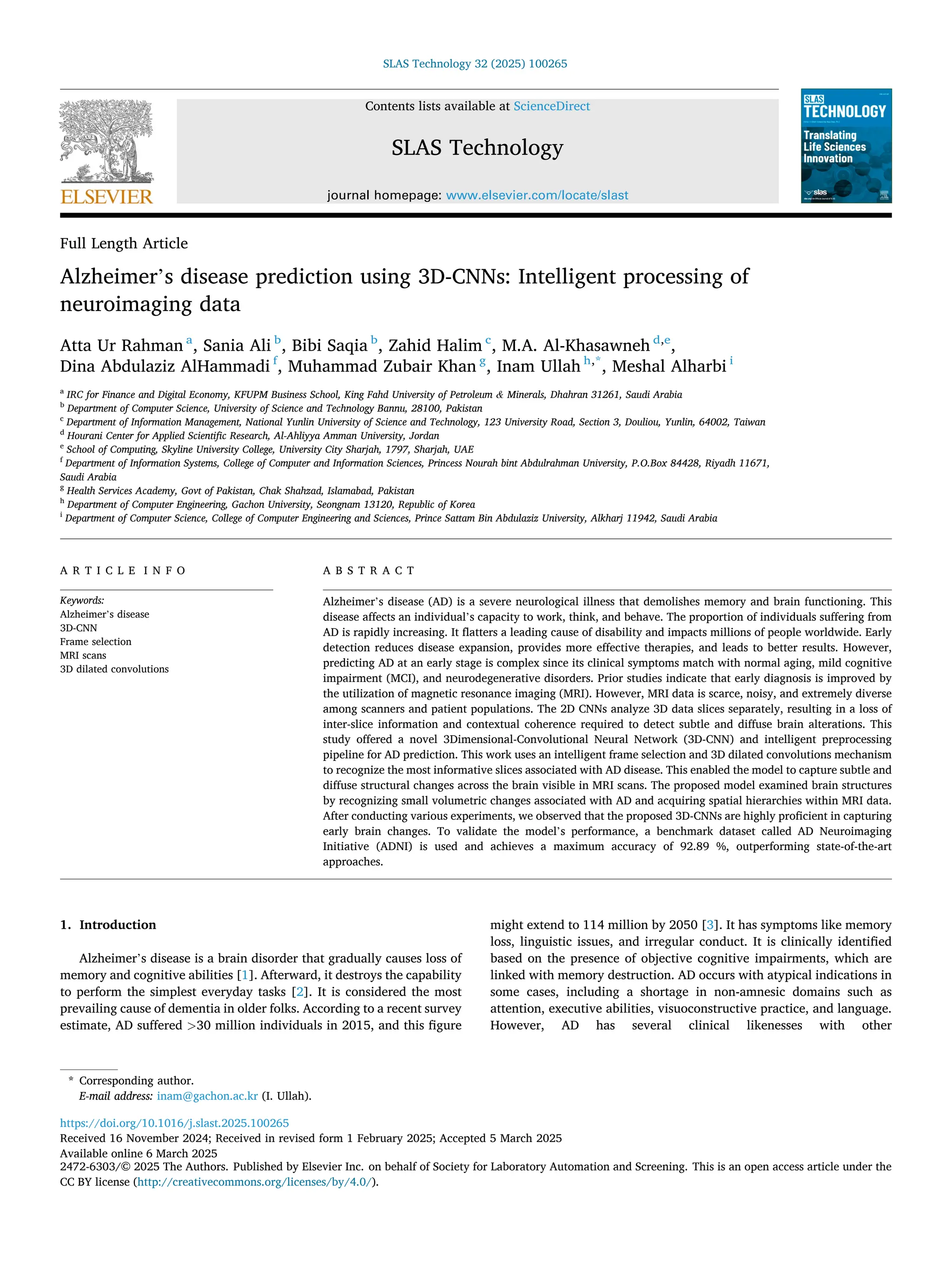 [17] Kale MB, et al. AI-driven innovations in Alzheimer’s Disease: integrating early
