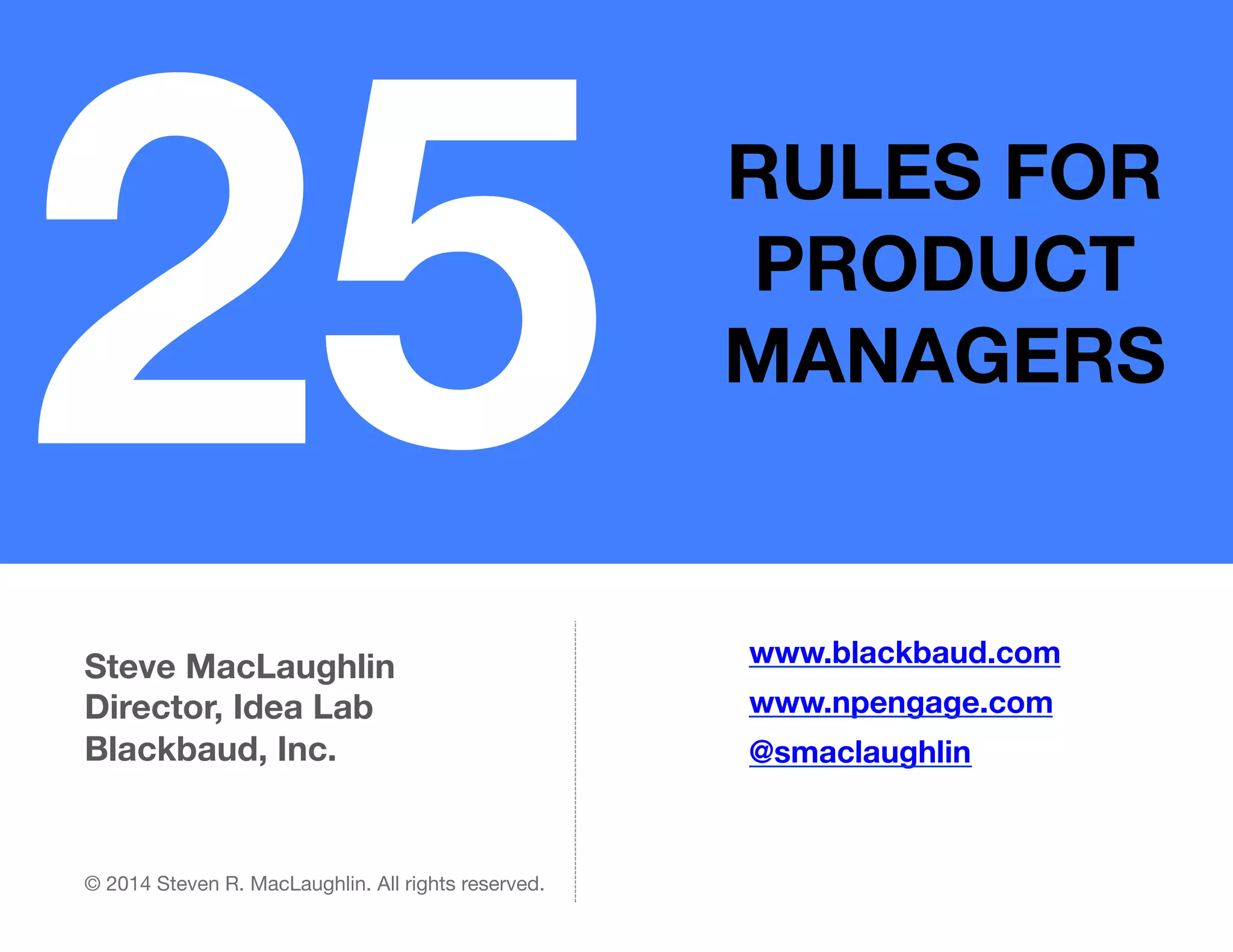 The document outlines 25 essential rules for product managers as articulated by Steve MacLaughlin. Key principles emphasize the importance of understanding customer needs, prioritizing strategy over technology, and maintaining clarity in communication. It advises managers to seek external feedback, avoid making decisions based solely on individual preferences, and ensure products meet the valuable, usable, and feasible criteria.