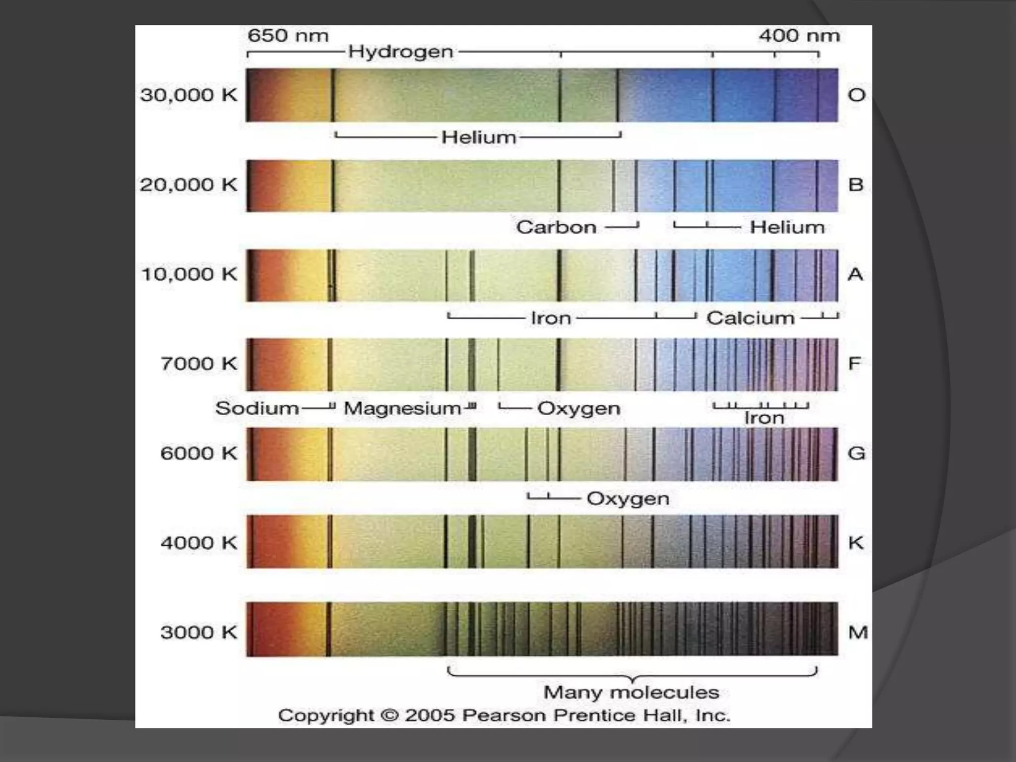 The document discusses the composition, temperature, size, and motion of stars. It can be determined that a star's composition and temperature by analyzing its spectrum using a spectrograph. The spectrum will show dark lines that indicate the elements present in the star. A star's motion can be apparent, due to Earth's movement, or actual through its rotation, revolution, or Doppler shift as it moves towards or away from Earth. The document also summarizes the life cycles of stars from their formation in nebulae to their evolution into objects like white dwarfs, neutron stars, or black holes.