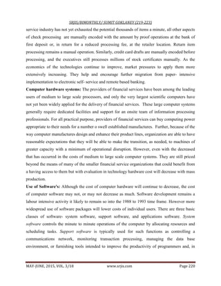 IT plays a key role in financial markets by enabling electronic networks for transactions and providing tools to analyze risks and transactions. The document discusses how IT systems help administer the field of finance through risk analysis, risk reduction, and information exchange over networks. It also outlines some of the computer hardware, software, telecommunications technologies, and security issues that financial institutions utilize with increasing IT usage.