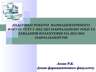 Підсумки 2012/2013 навчального року та завдання на наступний академічний рік на фармацевтичному факультеті ЛНМУ імені Данила Галицького