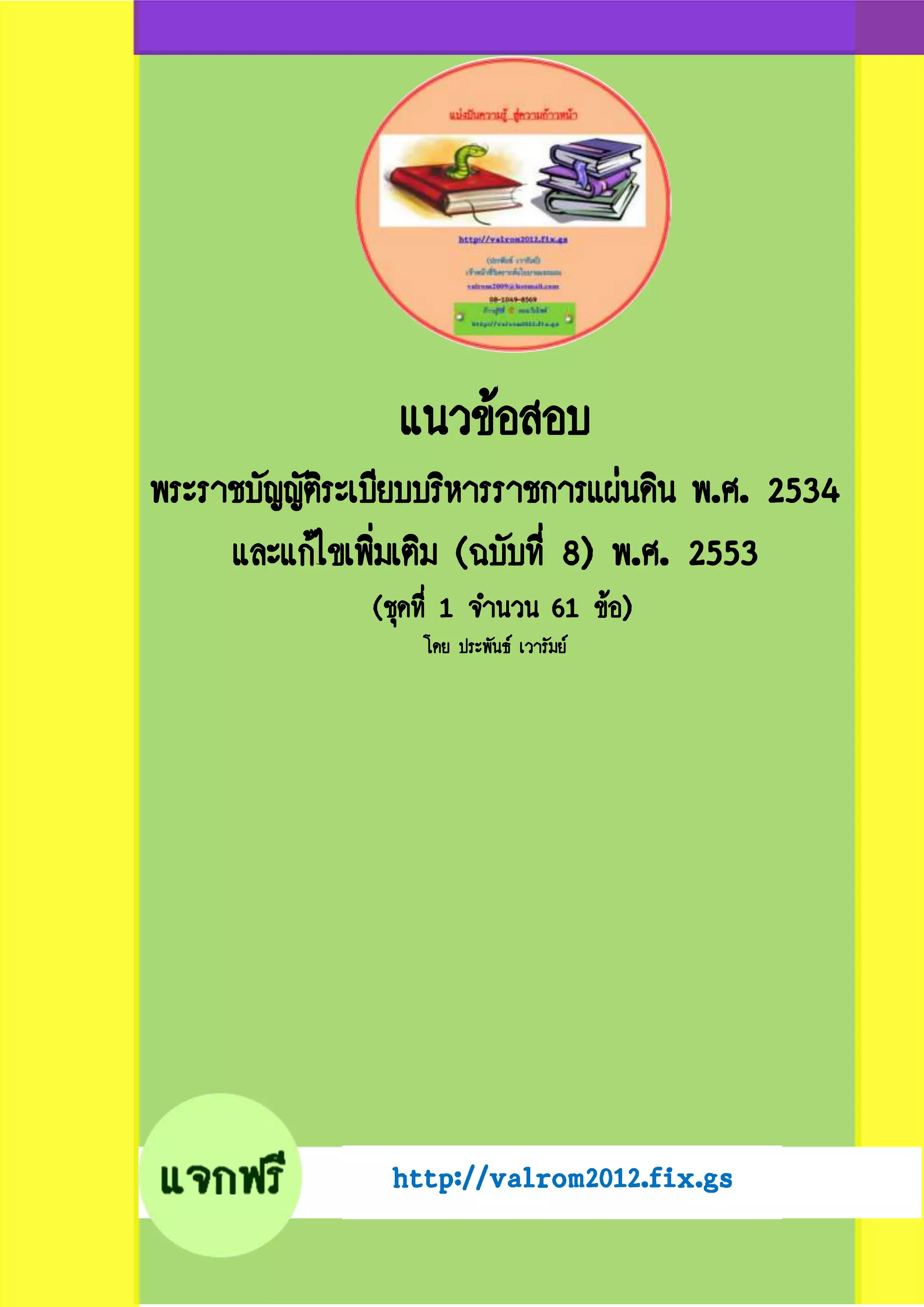 (ฉบับที่ 8) พ.ศ. 2553 (ชุดที่ 1 จานวน 61 ข้อ) โดย ประพันธ์ เวารัมย์ http://valrom2012.fix.gs