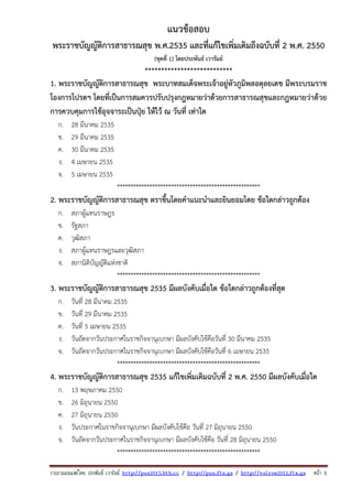แนวข้อสอบพระราชบัญญัติการสาธารณสุข พ.ศ.2535 และที่แก้ไขเพิ่มเติมถึงฉบับที่ 2 พ.ศ. 2550 ติดตามเพิ่มเติมได้ที่ http://valrom.igetweb.com หรือ http://group.wunjun.com/valrom2012/11251