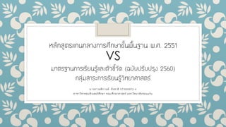 หลักสูตรแกนกลางการศึกษาขั้นพื้นฐาน พ.ศ. 2551 กับ มาตรฐานการเรียนรู้และตัวชี้วัด (ฉบับปรับปรุง 2560)กลุ่มสาระการเรียนรู้วิทยาศาสตร์ นางสาวอติกานต์ ติงชาติ 573050672-4 สาขาวิชาคอมพิวเตอร์ศึกษา คณะศึกษาศาสตร์ มหาวิทยาลัยขอนแก่น