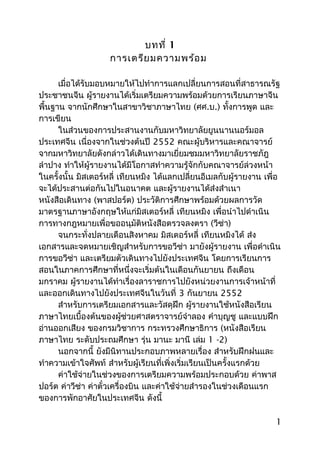 บทที่ 1 การเตรียมความพร้อม เมื่อได้รับมอบหมายให้ไปทำาการแลกเปลี่ยนการสอนที่สาธารณรัฐ ประชาชนจีน ผู้รายงานได้เริ่มเตรียมความพร้อมด้วยการเรียนภาษาจีน พื้นฐาน