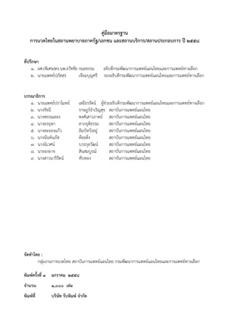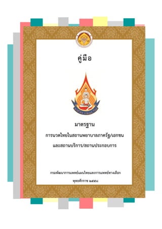 คู่มือมาตรฐานการนวดไทยในสถานพยาบาลภาครัฐ/เอกชน และสถานบริการ/สถานประกอบการ กรมพัฒนาการแพทย์แผนไทยและการแพทย์ทางเลือก กระทรวงสาธารณสุข