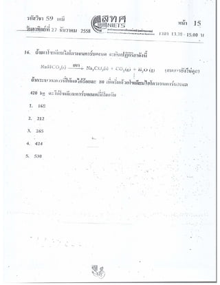 ข้อสอบ 9 วิชาสามัญ เคมี 2559