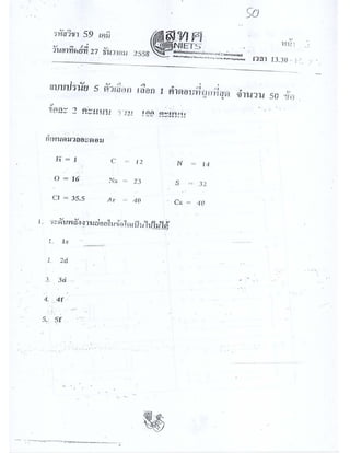 เคมี กสพท ปี58 พร้อมเฉลย