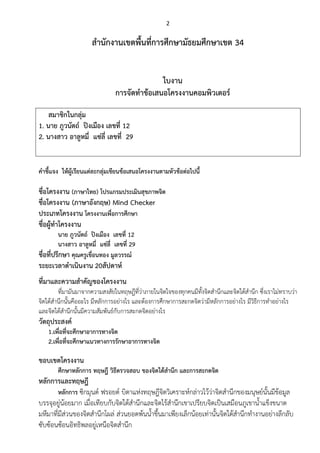 2 สานักงานเขตพื้นที่การศึกษามัธยมศึกษาเขต 34 ใบงาน การจัดทาข้อเสนอโครงงานคอมพิวเตอร์ สมาชิกในกลุ่ม 1. นาย