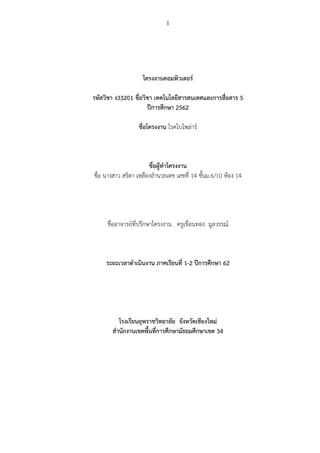 1 โครงงานคอมพิวเตอร์ รหัสวิชา ง33201 ชื่อวิชา