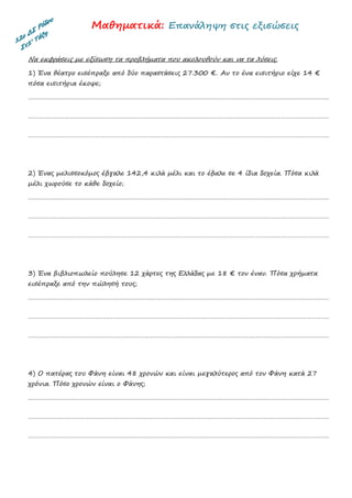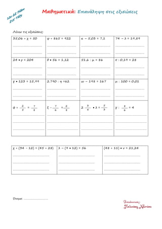 Μαθηματικά: Επανάληψη στις εξισώσεις
