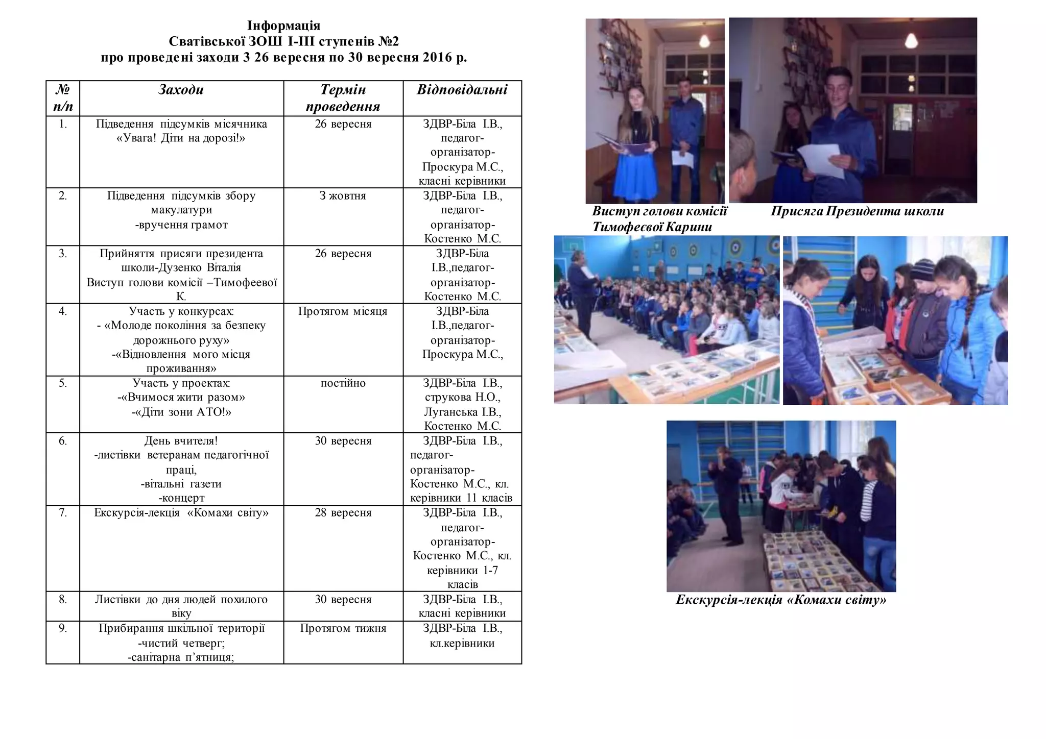 про проведені заходи 3 26 вересня по 30 вересня 2016 р.