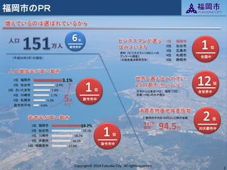 詳細は、右下の「Moreボタン」をクリックしてください。 【講演名】 福岡市におけるオープンデータの活用推進に向けた取組み 【講演者】 福岡市CIO補佐官 竹内 聡 【利用ライセンス】 Copyright ALL rights reserved