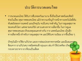 • การนวดแผนไทย ได้รับการสืบทอดกันมานาน ซึงถือเป็ นศาสตร์ และศิลป