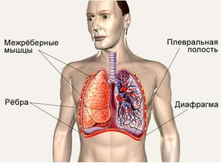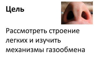 Документ посвящён строению легких и механизмам газообмена. Описание включает анатомию легких, их покрывающих оболочек, а также функционирование альвеол и бронхиального дерева. Важное внимание уделяется процессу диффузии газов, необходимому для дыхания.