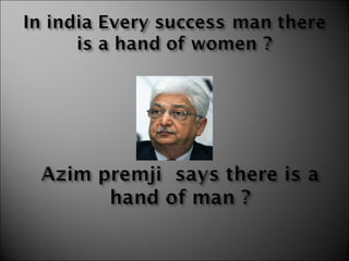 The document summarizes the journey of Azim Premji from taking over his father's small vegetable oil company in 1966 to transforming it into a global software company. It details how Premji had no business experience but was determined to prove wrong a shareholder who said he would run the company to the ground. Through hard work and an empowerment strategy, Premji grew the company and eventually earned a bachelor's degree in engineering from Stanford in 2000, transforming from a vegetable oil mill into a global software powerhouse.