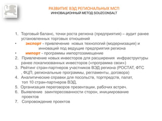 Документ представляет собой отчет о круглом столе по вопросам продвижения на рынки Восточной Европы и развитию внешнеэкономической деятельности (ВЭД) для малых и средних предприятий (МСП) в регионе Карелия. Основные темы включают привлечение новых технологий и инвестиций, анализ торгового баланса, а также стратегии кооперации между крупным и малым бизнесом. Упоминаются проблемы, с которыми сталкиваются предприниматели в международной торговле, и предлагаются решения для улучшения ВЭД и трансфера технологий.