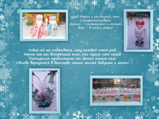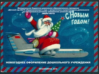 Документ описывает новогоднее оформление детского сада №272 в Красноярске, отражая традиции встречи Нового года. В детском саду прошел конкурс, который завершился награждением за креативные идеи, включая элементы русского стиля. Участие детей и родителей в создании новогоднего настроения и традиционных атрибутов праздника играет ключевую роль в мероприятии.