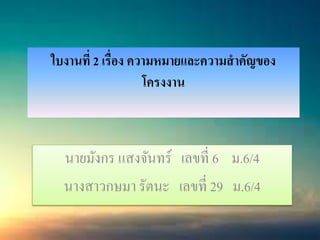 ใบงานที่ 2 เรื่องความหมายและความสาคัญของ