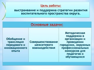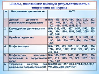 Документ описывает результаты воспитательной работы образовательных организаций в Юго-Восточном административном округе Москвы за 2013-2014 учебный год, включая достижения в конкурсах и мероприятиях. Образовательные учреждения активно участвуют в конкурсах, семинарах и проектах, акцентируя внимание на патриотическом воспитании и дополнительном образовании. Также приводится информация о посещениях музеев и театров, подтверждающая вовлеченность учащихся в культурные мероприятия.