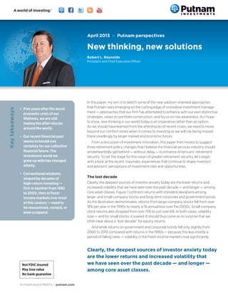 - The document discusses new approaches to investment management that focus on risk awareness and absolute returns rather than benchmark returns. It summarizes recent volatility in traditional asset classes and the growth of absolute return funds in response. Absolute return funds aim to provide positive returns regardless of market conditions through diversification of investment strategies and philosophies rather than just asset types. The document argues for looking beyond traditional indexes to find investment opportunities and evaluating portfolios based on their allocation of risk rather than just asset types.
