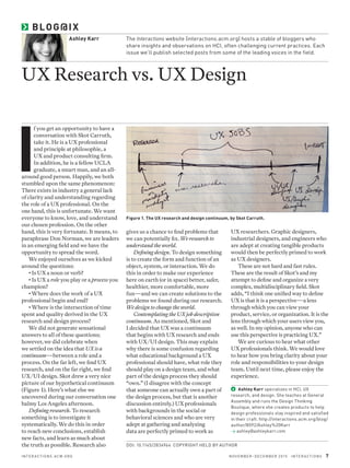 The document discusses the differences and relationships between UX research and UX design. It proposes that UX exists on a continuum, with UX research on one end and UX/UI design on the other. UX researchers investigate problems systematically through research to understand users, while UX designers create solutions to those problems through design to improve user experiences. The roles of UX professionals may overlap depending on their background and skills. There is often a lack of clarity around UX job titles and responsibilities.