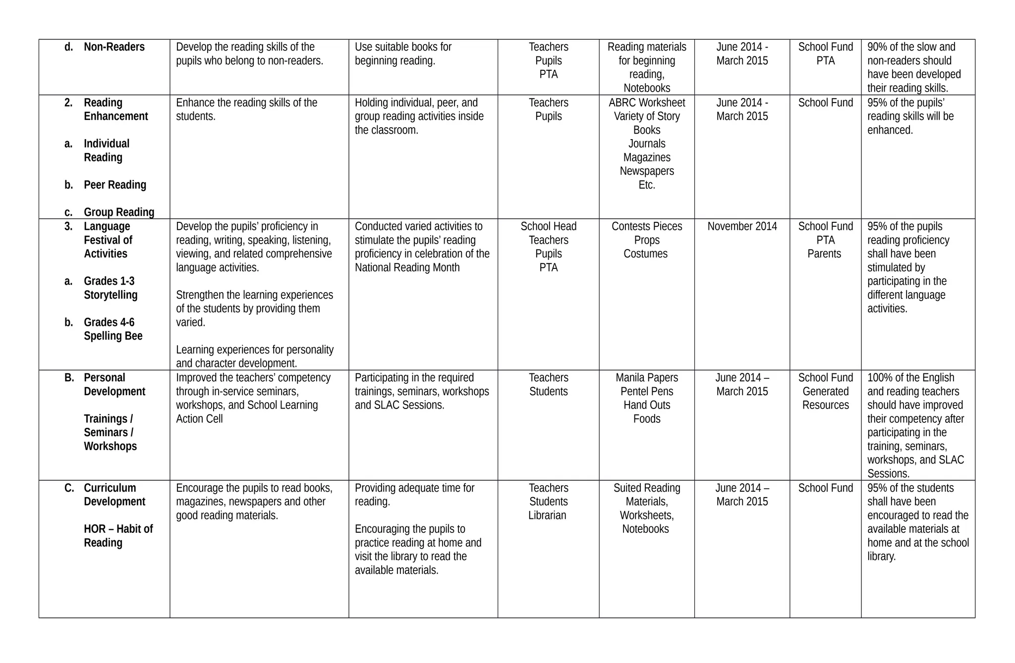 d. Non-Readers Developthe reading skills of the
