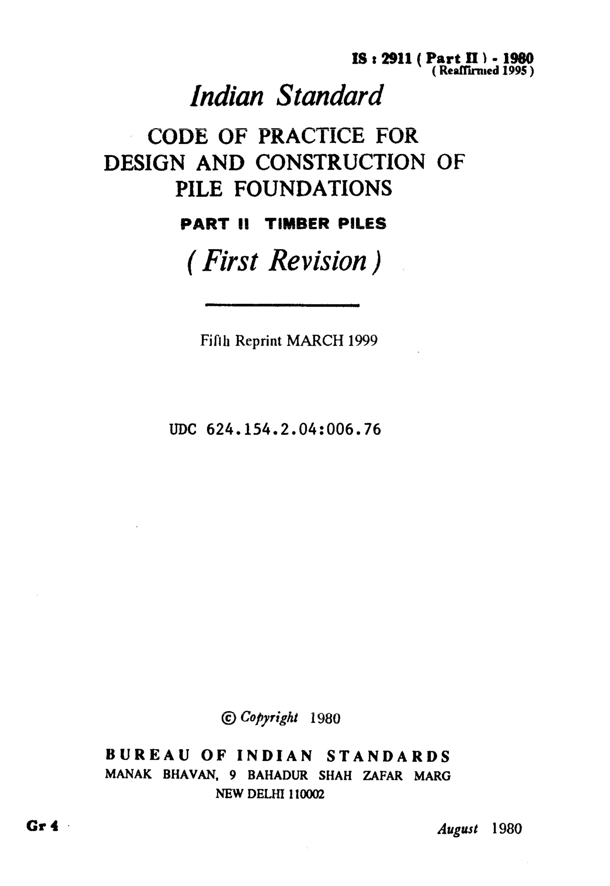 This document provides guidance on the design and construction of timber pile foundations. It defines various terms related to timber piles and pile foundations. It outlines the necessary site investigation and structural design information required for pile foundation design. It also describes common equipment and accessories used for timber pile installation, including hammers, casings, and frames. The document emphasizes that pile foundations should be designed to transfer structural loads to the soil without causing soil failure or unacceptable settlements.