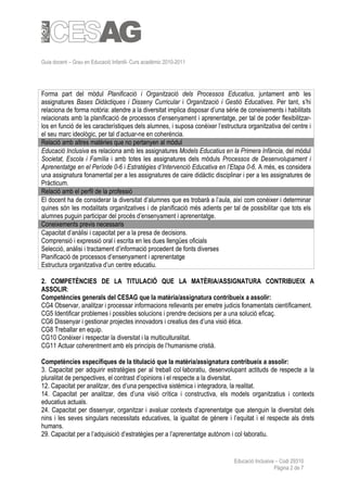 Guia docent –Grau en Educació Infantil- Curs acadèmic 2010-2011
