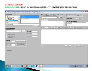 This document provides step-by-step instructions for normalizing bibliographic data and performing various bibliometric analyses using BibExcel. It describes how to: