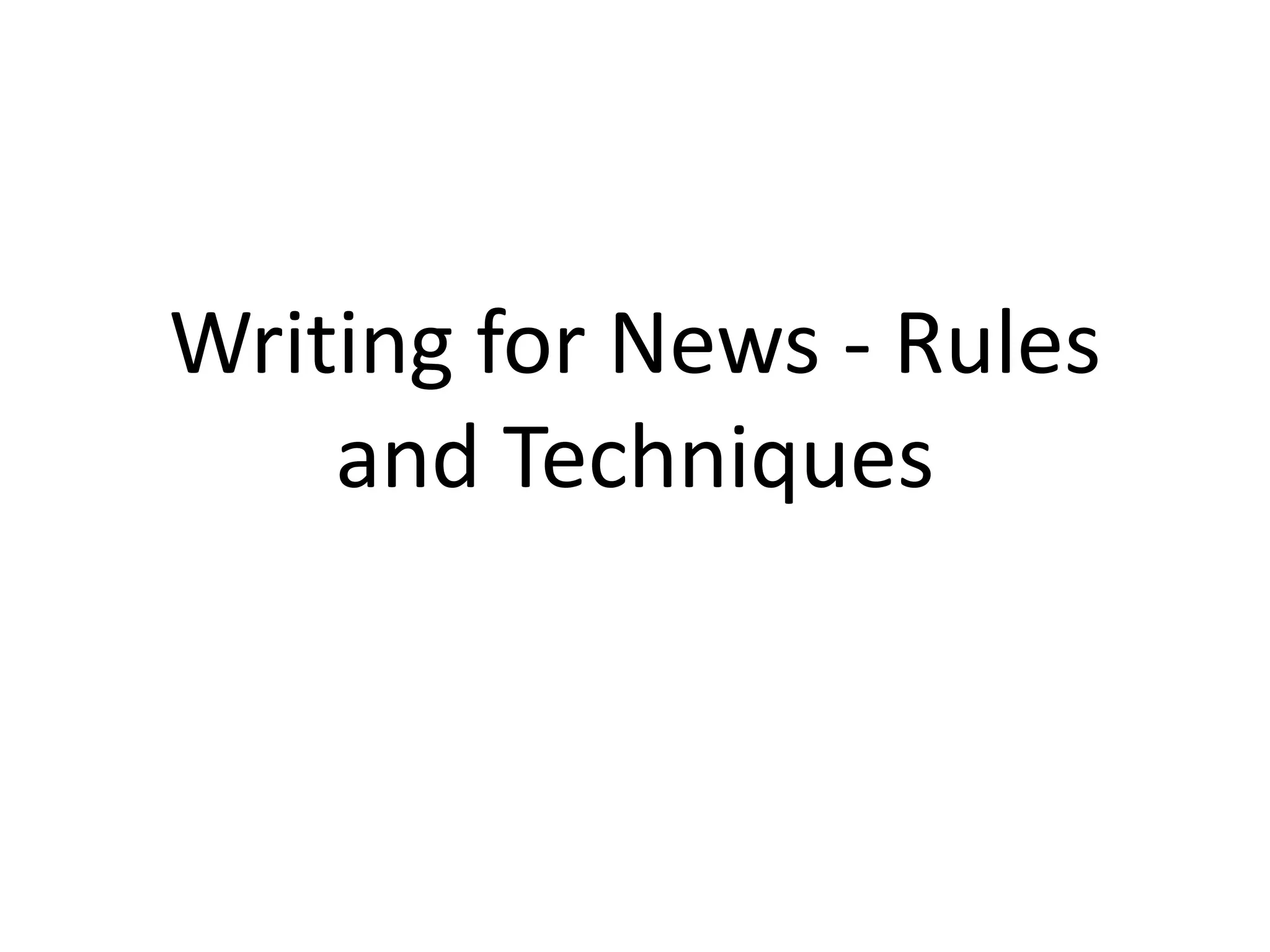 The document provides guidelines for writing news stories, including following the inverted triangle structure where the most important information is at the top, using the 5W's to cover who, what, when, where, why, keeping writing clear, concise and correct, estimating story length using a "3 words per second" table, and additional tips like using a relevant peg and covering multiple angles.